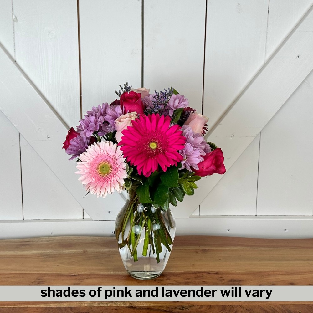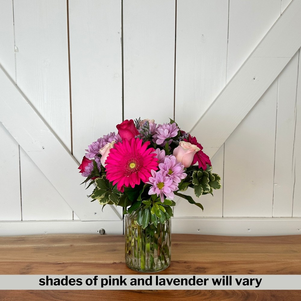 What’s sweeter than a small jug brimming with blooms? This charming arrangement pairs pink roses and gerberas with playful mauve daisies, creating a delightful burst of colour and cheer. A perfect cho...