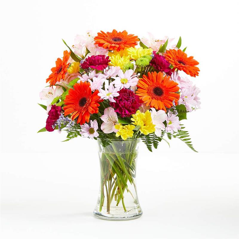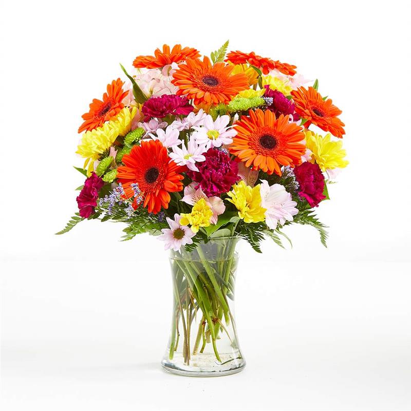 Say hello to happy! This bright and joyful mix of fresh blooms—featuring daisies, carnations, roses, and more—is like a big, colourful hug in a vase. Perfect for birthdays, get-wells, thank-yous, or a...