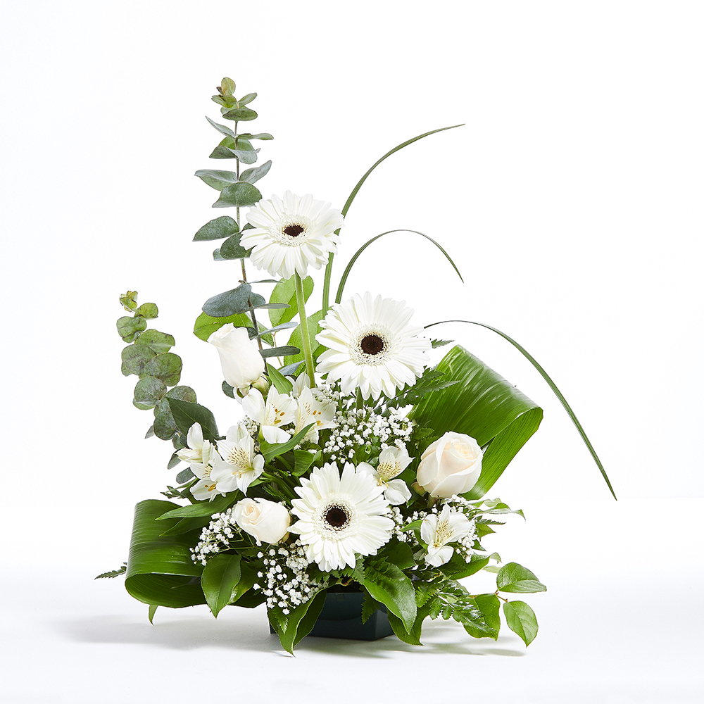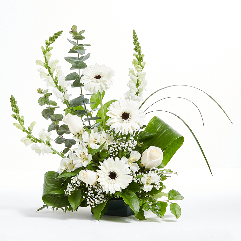 Enduring in its simplicity, this graceful arrangement in white is perfect when you are seeking a moment of peace and tranquility. It makes a perfect gift for any occasion and will complement any deco...