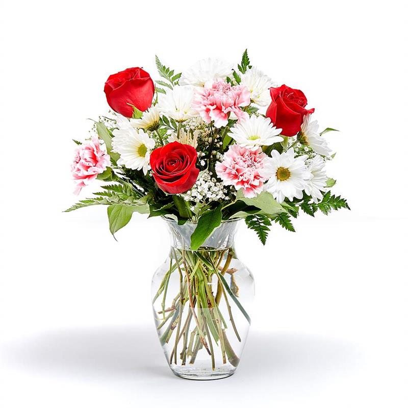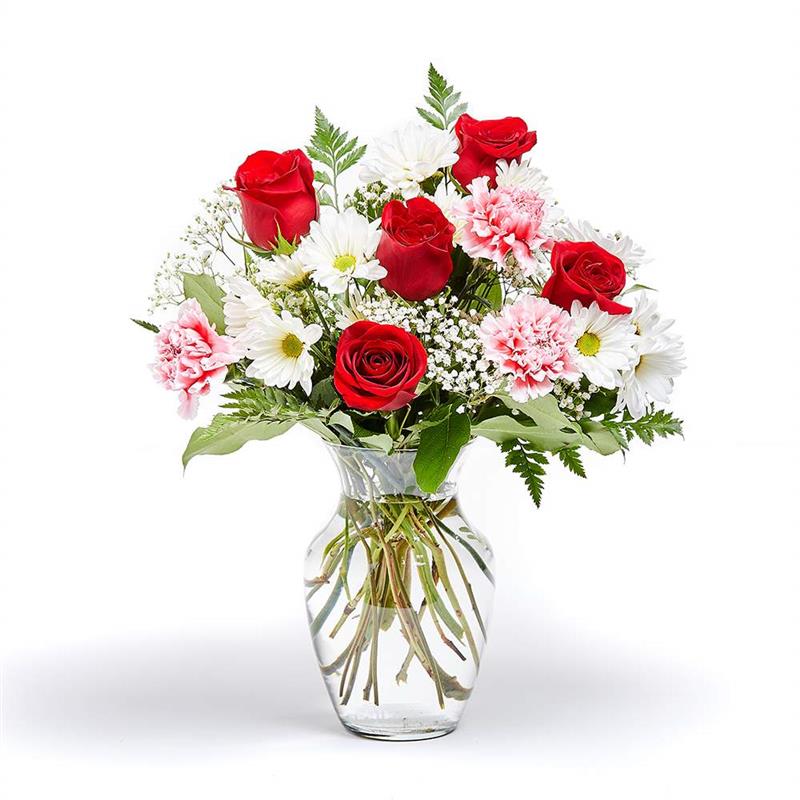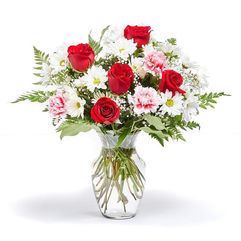 Roses, daisies, and carnations dance in harmony in this adorable arrangement, creating a beautiful expression of warmth and affection. Perfect for showing someone you care or adding a touch of joy to ...