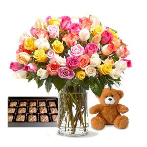 Want to make a grand impression? Show them they are worth it and express your love and affection with this magnificent arrangement featuring five dozen premium roses designed in a classic clear glass ...